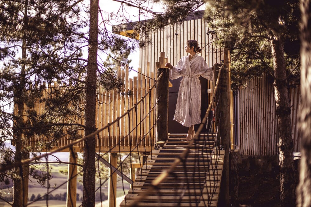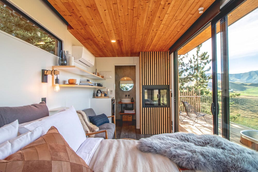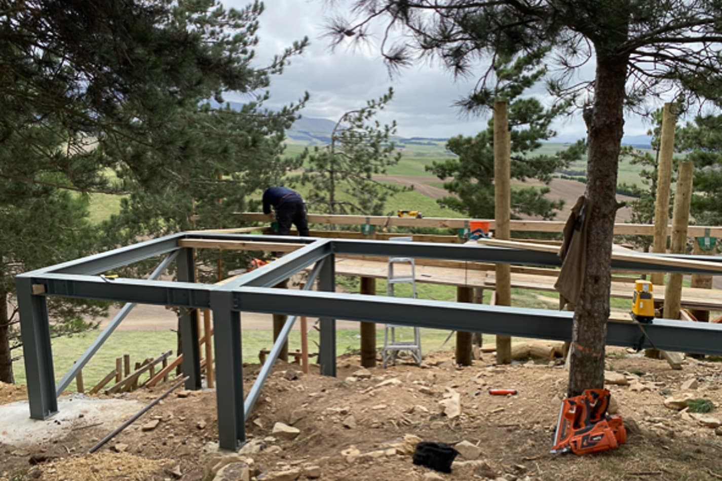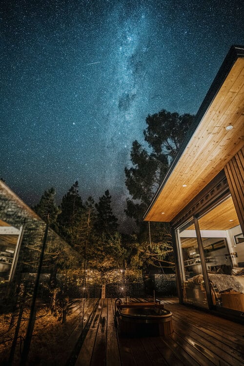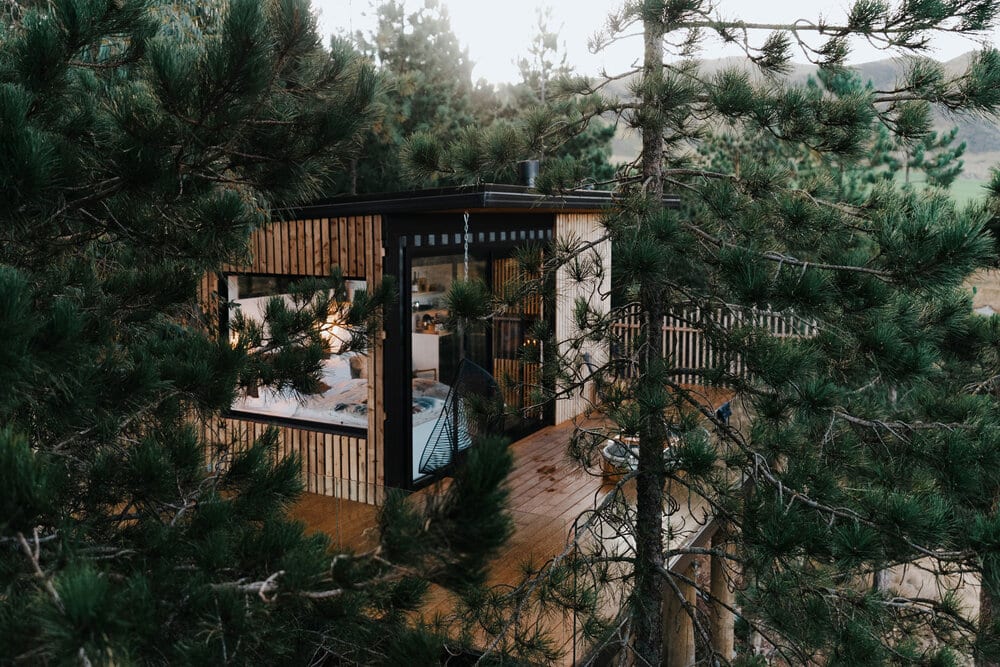 The project involved building boutique treehouse accommodation on a farm in the beautiful Hakataramea Valley. The sloping site and raised design made it more complex than most builds, with post foundations built on a steep part of the section. The client also requested some unusual features – a large deck overlooking the valley, swing bridges between the deck and the main building, and a sauna built on a separate raised platform.